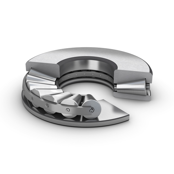 Tapered roller thrust bearings can withstand heavy axial loads and peak loads. The bearings are highly rigid and require little axial space. Bearing Features: Separate Design The shaft and housing washers and roller and cage thrust assemblies of tapered roller thrust bearings with cages can be installed sepa...